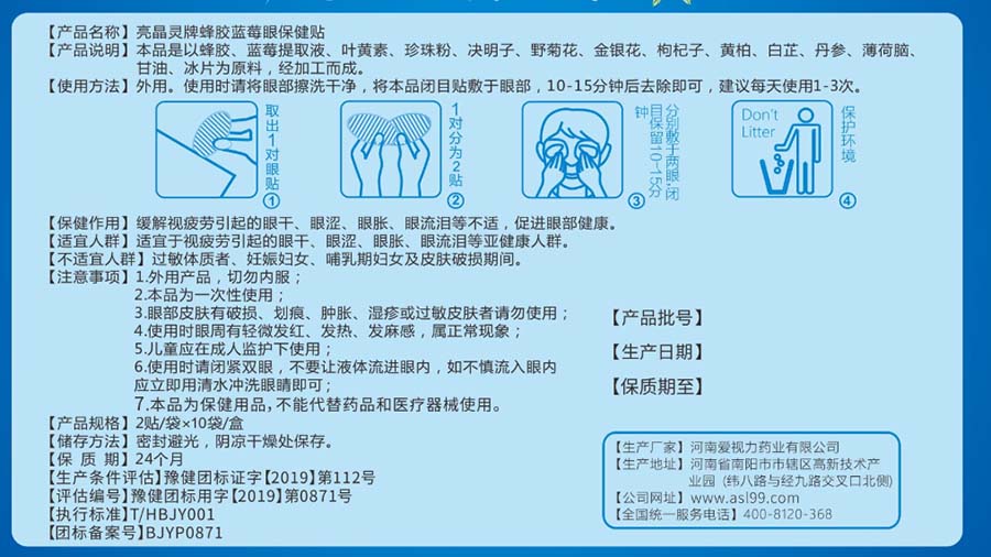 【促销礼品】亮晶灵蜂胶蓝莓眼贴