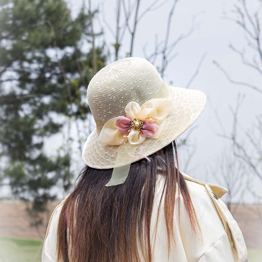 蕾丝珍珠遮阳帽