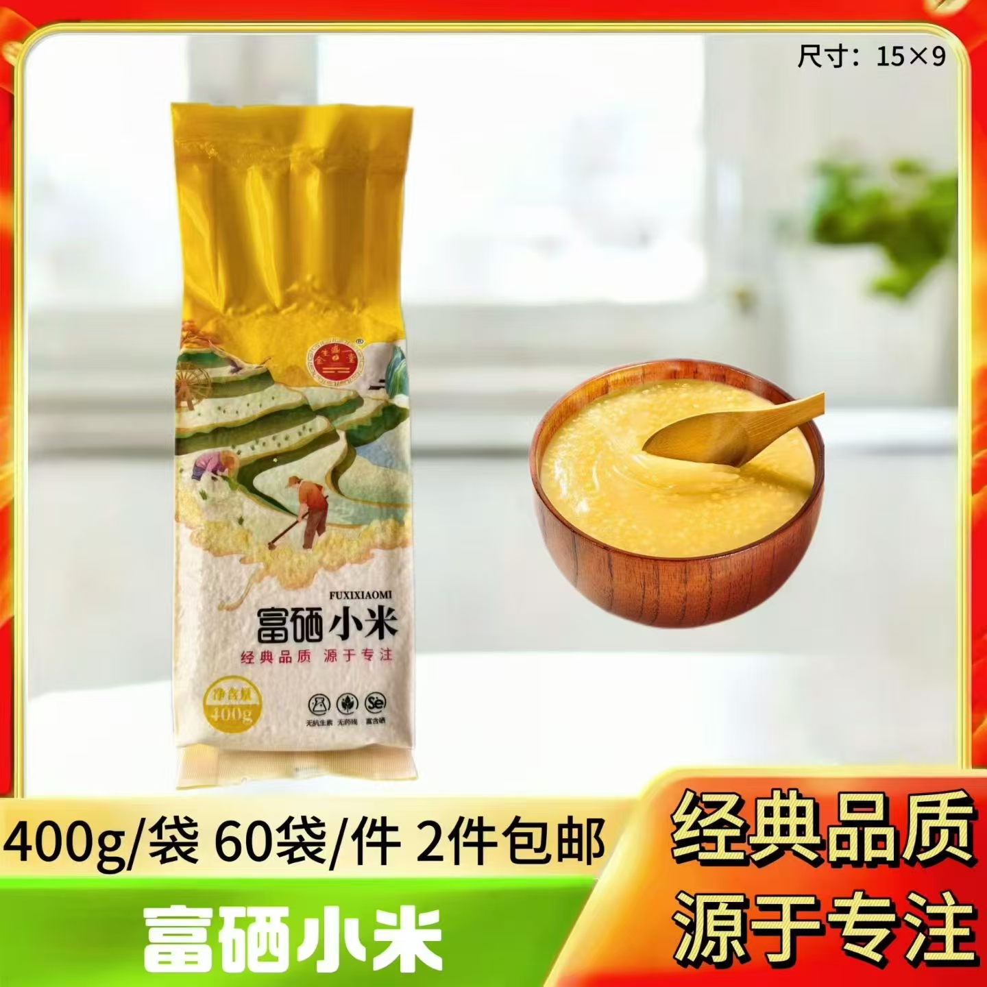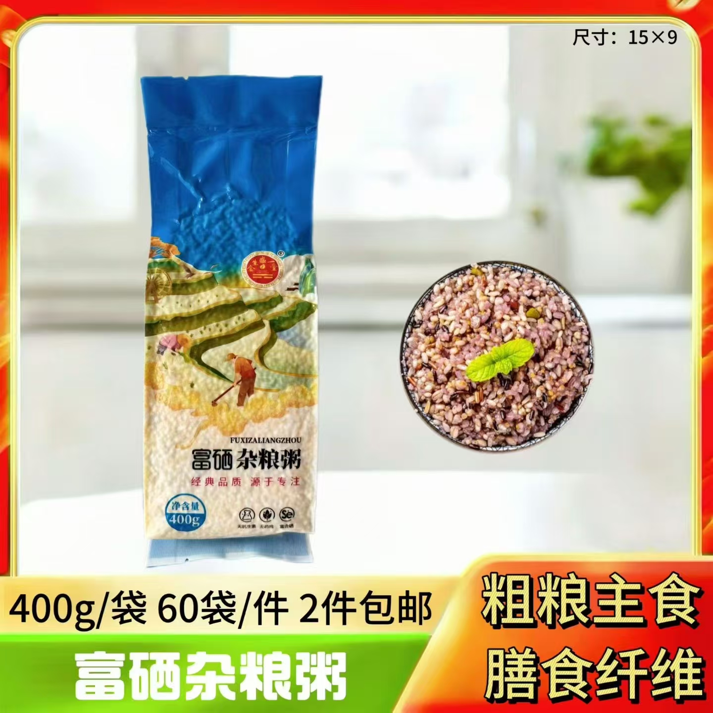 产品介绍:龙凤呈祥杂粮礼盒隆重上市,标配推荐版:富硒小米、富硒绿豆、富硒杂粮粥、富硒红米、富硒玉米碴、富硒燕麦胚芽米#2400克#(400克×6袋),一件10盒/套,2件起包邮!