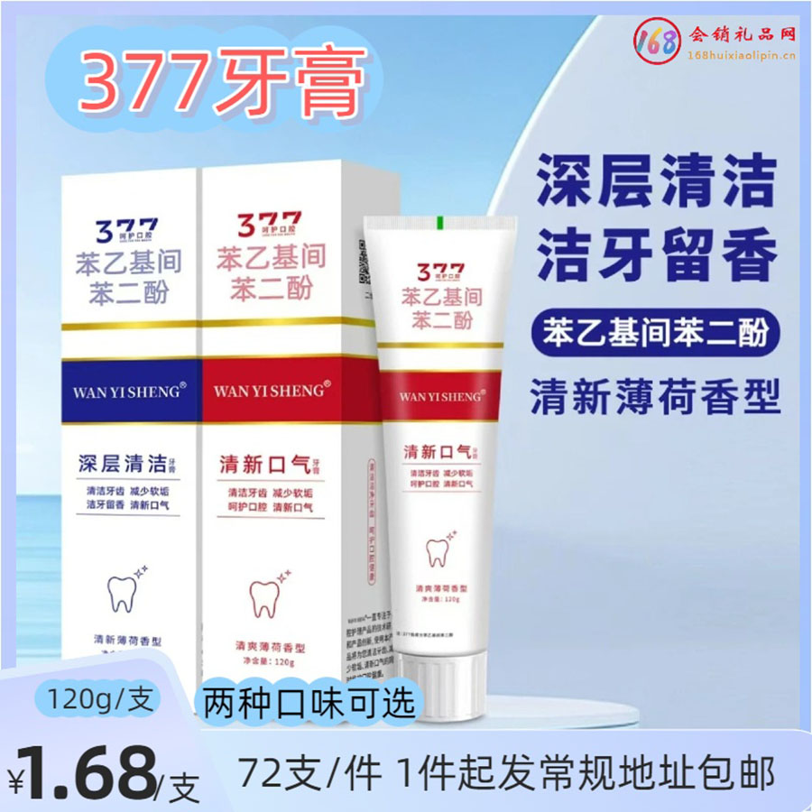 备注:377呵护口腔牙膏~ 1.68 元 / 支,每支 120g,72 支为 1 件,1 件起发常规地址包邮!