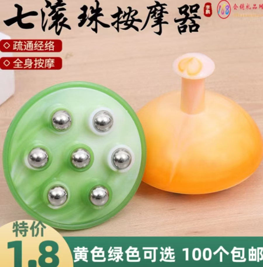 【七滚珠按摩器】特价 1.8 元,100 个包邮,黄色绿色可选~能疏通经络,还可全身按摩,
