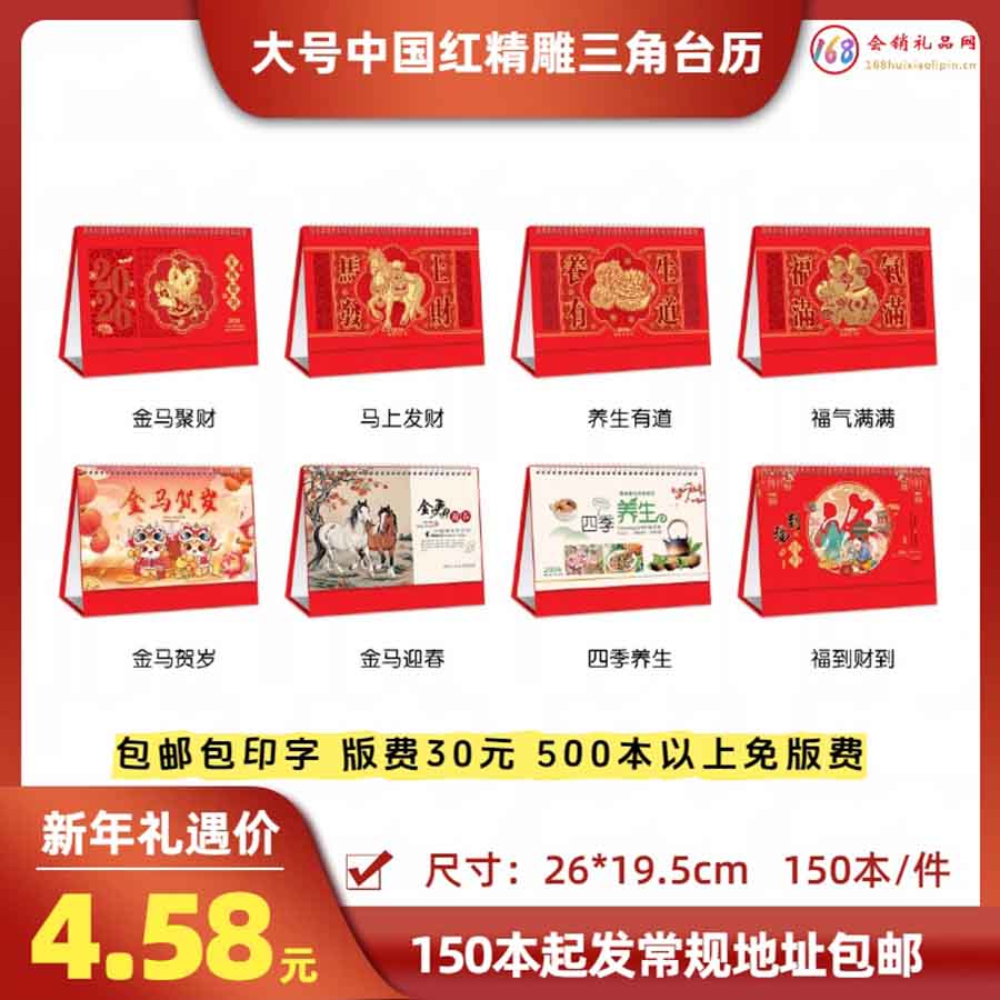 大号中国红精雕三角台历,4.58 元,150 本起常规地址包邮,新年礼遇,精雕工艺多主题,包邮印字,500本一下加版费 30元,办公送礼好选择~