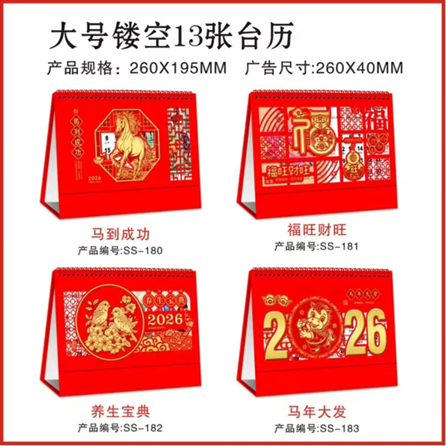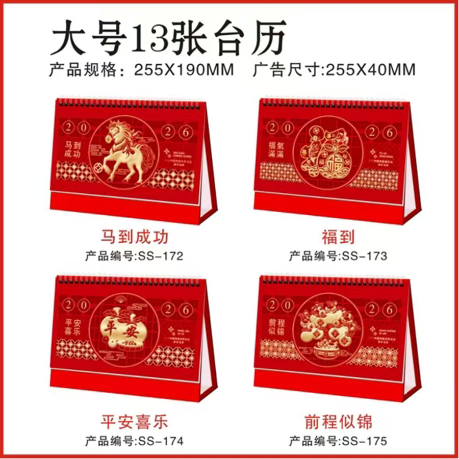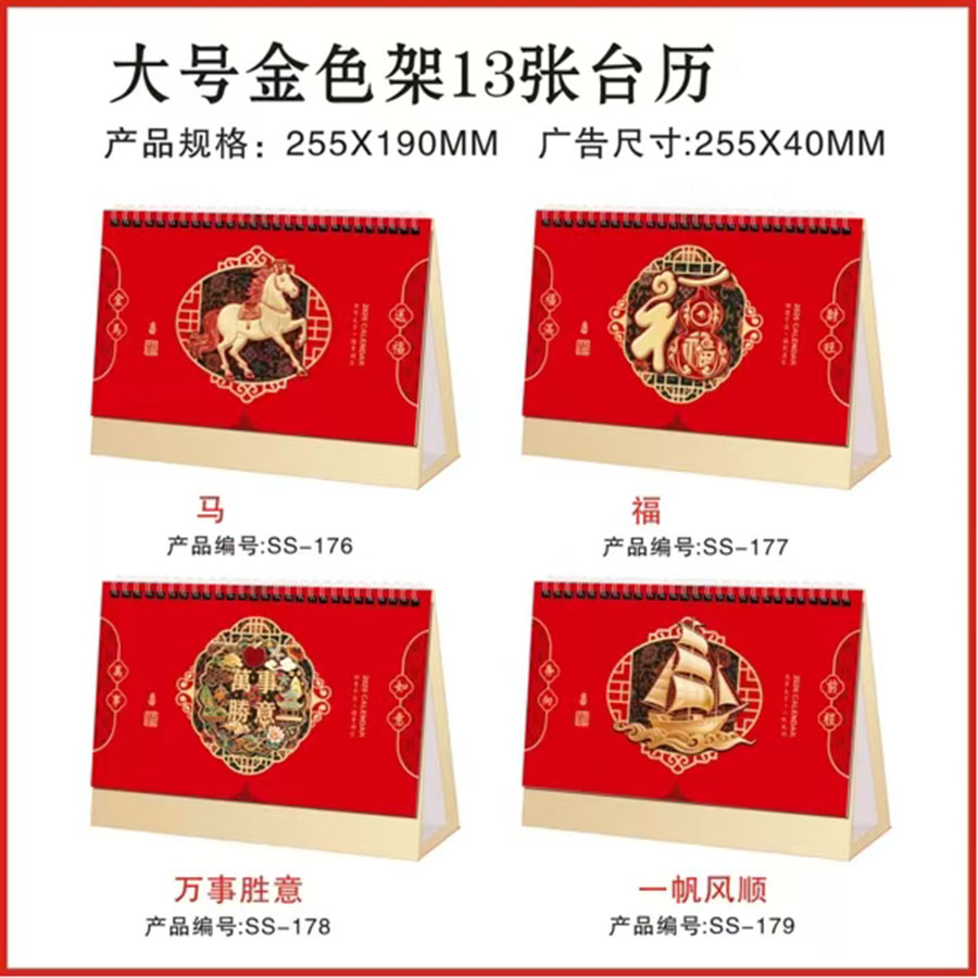 备注:大号13张台历(SS-172到175), 大号金色架13张台历(SS-176到179),