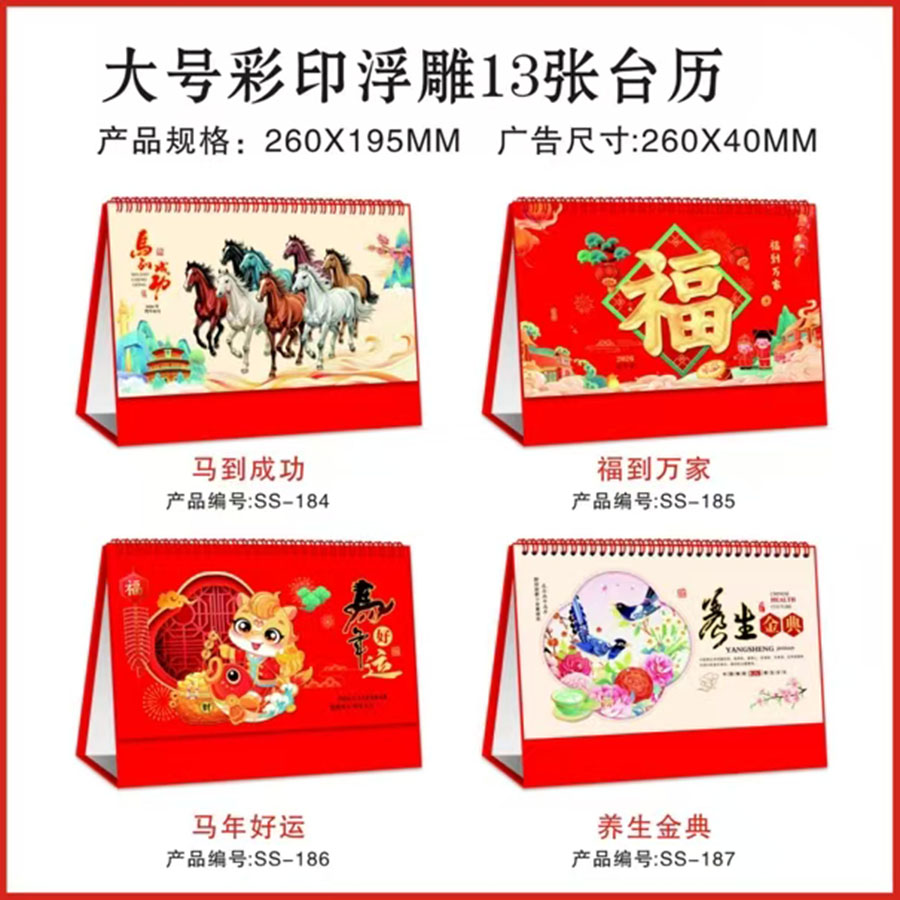 大号彩印浮雕13张台历(SS-184到187),大号韩式13张台历 (SS-188到195),