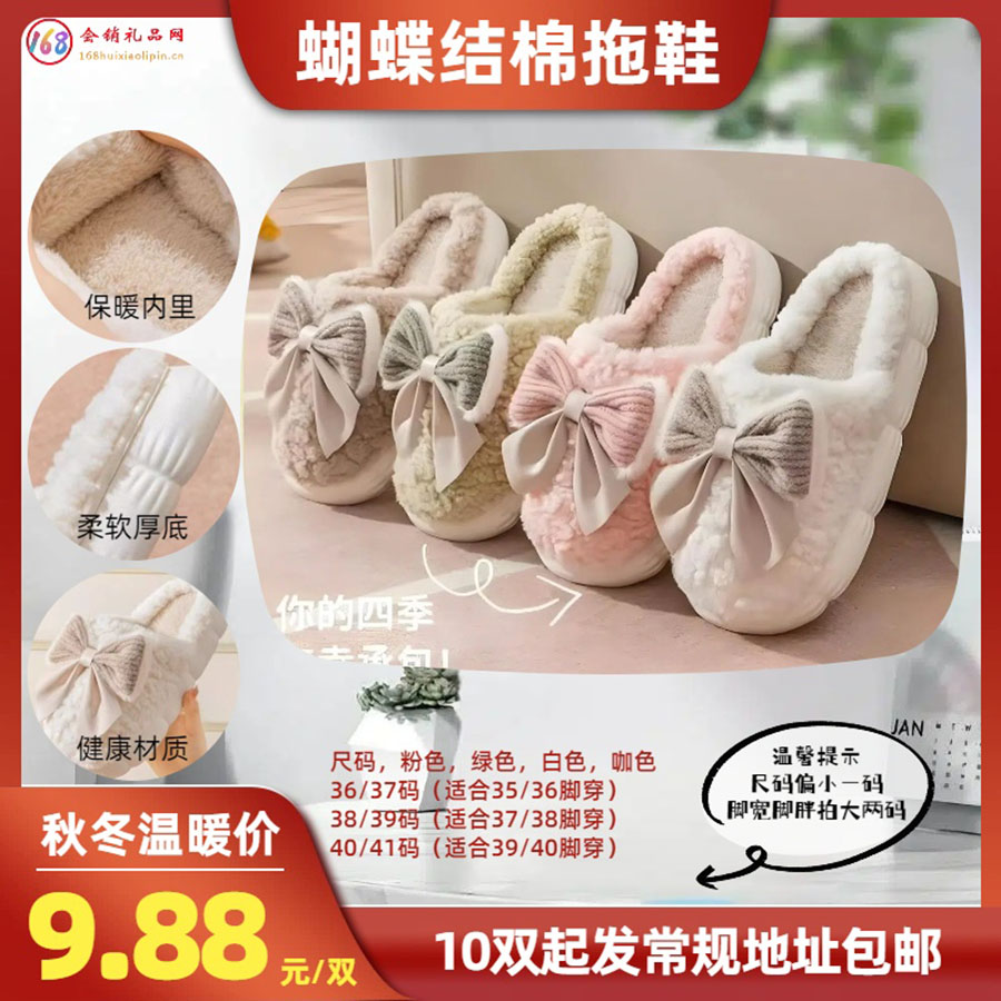 蝴蝶结棉拖鞋,9.88 元 / 双,10 双起发常规地址包邮。它有着保暖内里、柔软厚底和健康材质,多色多码可选,蝴蝶结设计尽显甜美,秋冬居家穿上它,既能温暖双脚,又能为居家穿搭增添一份可爱,是你秋冬居家的暖心之选~