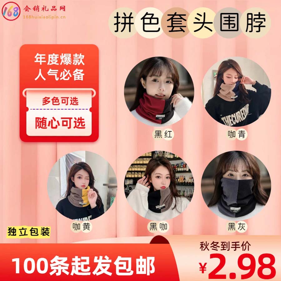 拼色套头围脖,秋冬到手价仅 2.98 元,100 条起发还包邮!多色可选,黑红、咖青、咖黄、黑咖、黑灰任你随心挑,是年度爆款人气必备单品,独立包装,为你秋冬添温暖,赶紧入手吧!”