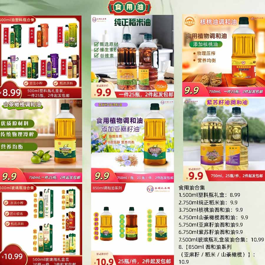 8.【850ml 调和油系列(亚麻籽 / 稻米 / 山茶橄榄)】:10.9