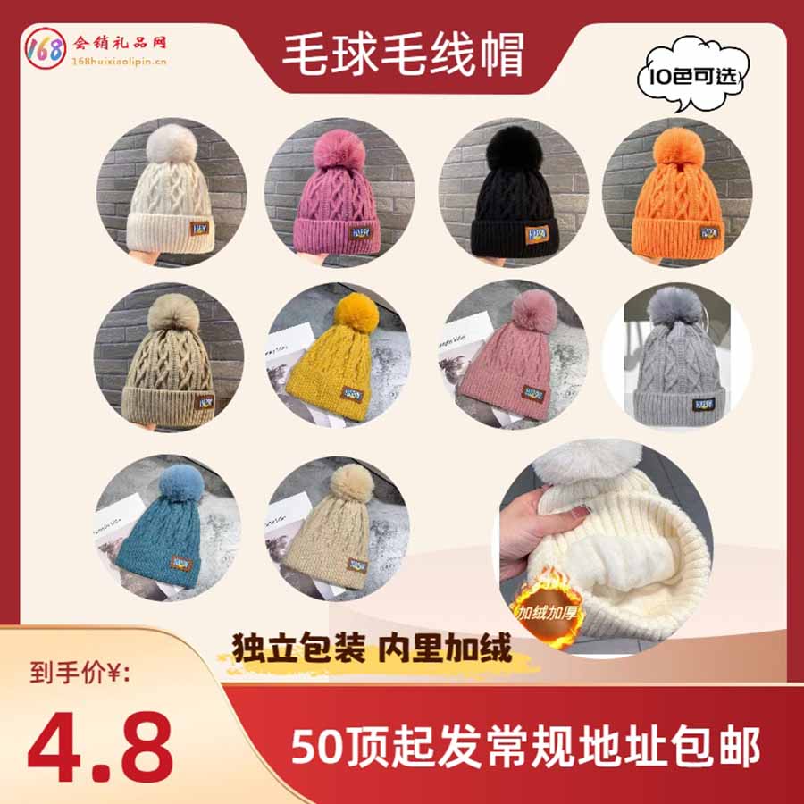 【促销礼品】毛球毛线帽