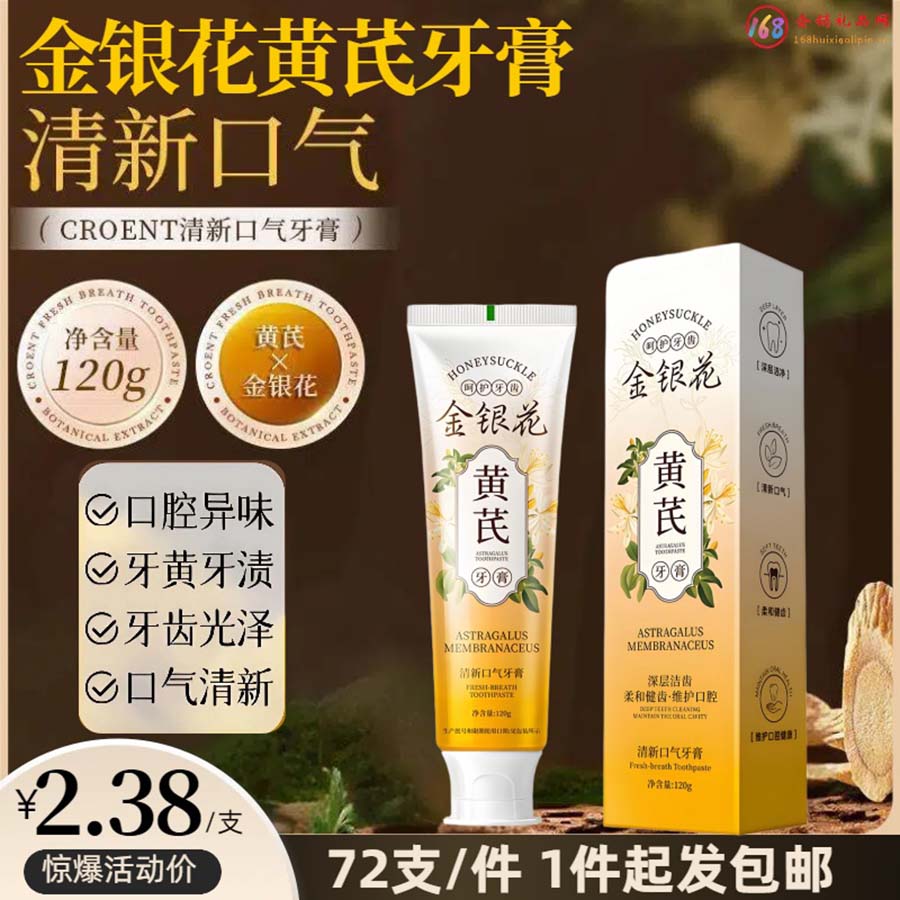 金银花黄芪牙膏,120g / 支,2.38 元 / 支,72 支 / 件、1 件起发包邮