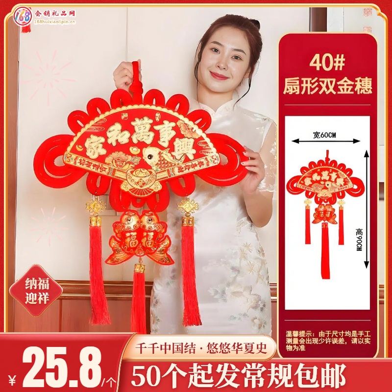 【促销礼品】中国结扇形双金穗 40#