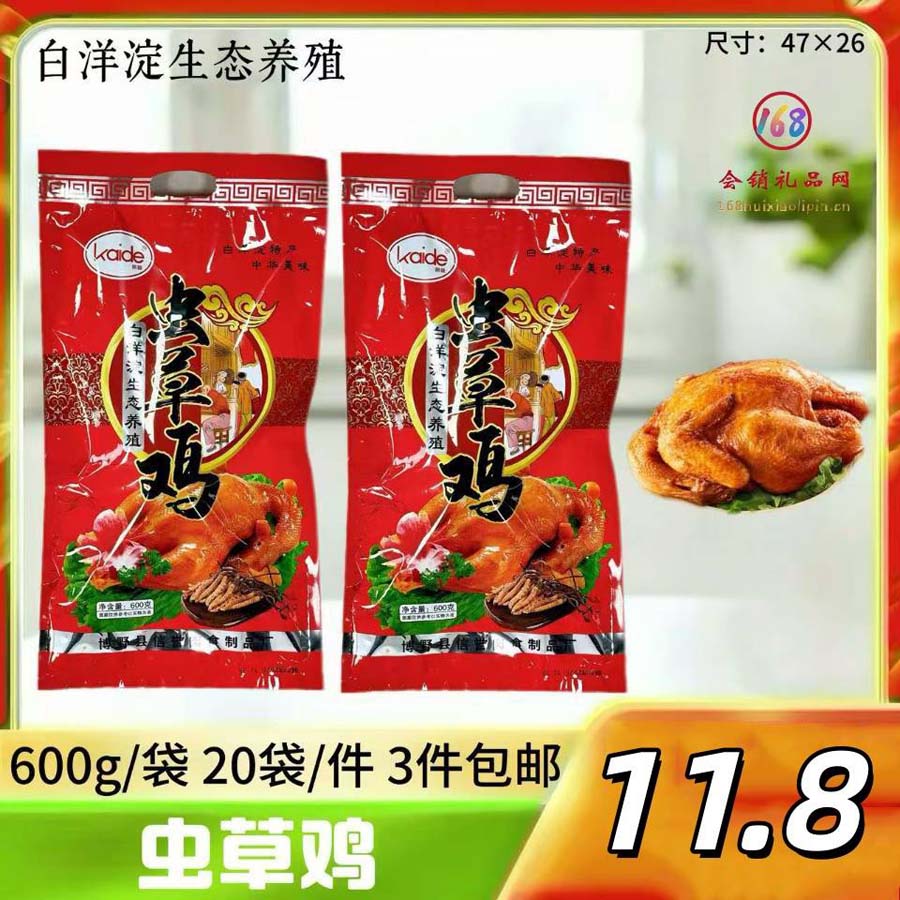 600克虫草鸡,一件20袋3件起包邮!白洋淀生态养殖土鸡,加入冬虫夏草滋补身体,味道鲜美可口!