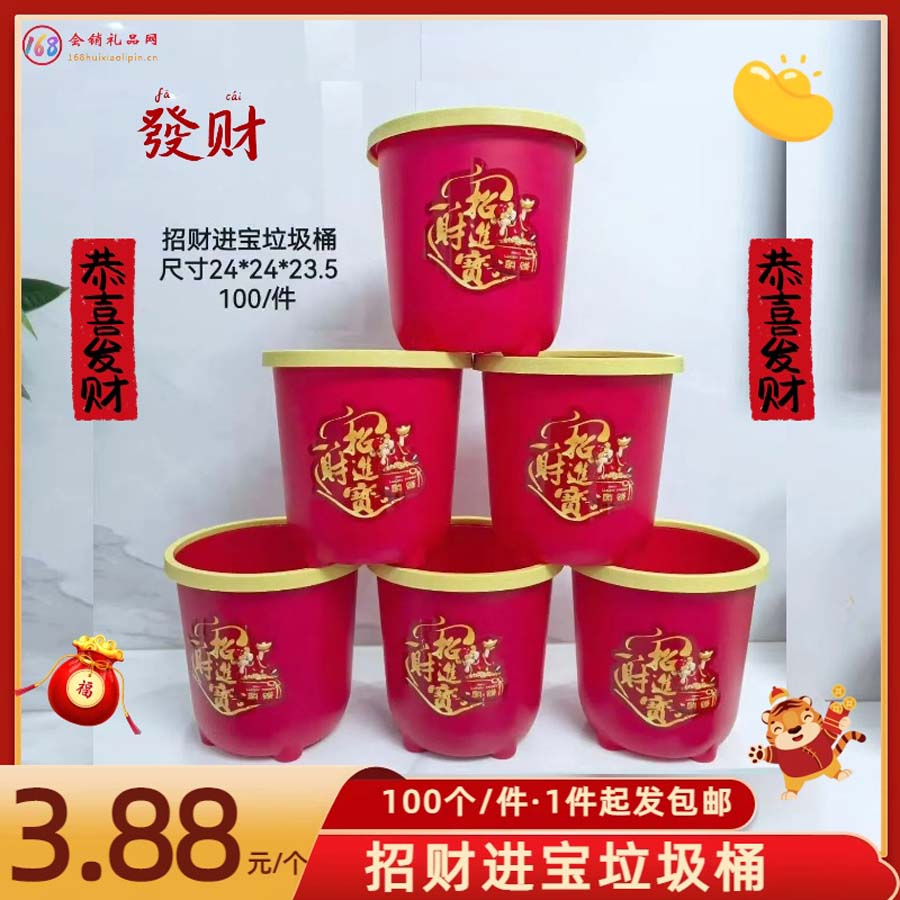 马年主题垃圾桶,塑料材质,桶身印 “招财进宝” 字样,喜庆红外观搭配 “新年纳福” 的寓意,契合春节 “财运亨通” 的祝福。