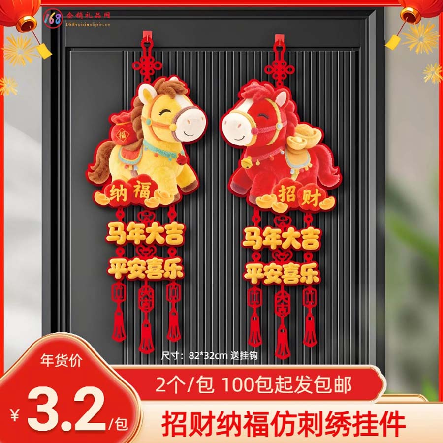 ??主体为马年生肖造型(含 “招财”“纳福” 字样),搭配流苏挂绳设计,可作门饰或节日装饰,融合新年吉祥文化元素,是喜庆的年俗小物件。