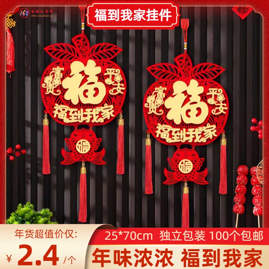 剪纸造型,红底配 “福” 字及吉祥语,带流苏装饰,是年味浓郁的新年门饰好物。