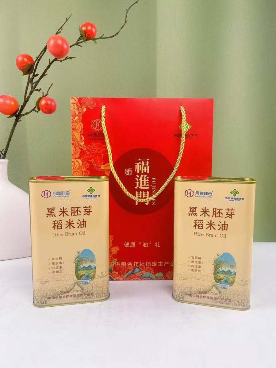 2.“福进门”油礼盒,750毫升铁罐黑米胚芽稻米油×2罐,中国供销社指定生产企业,15提/件,2件起包邮,有课件