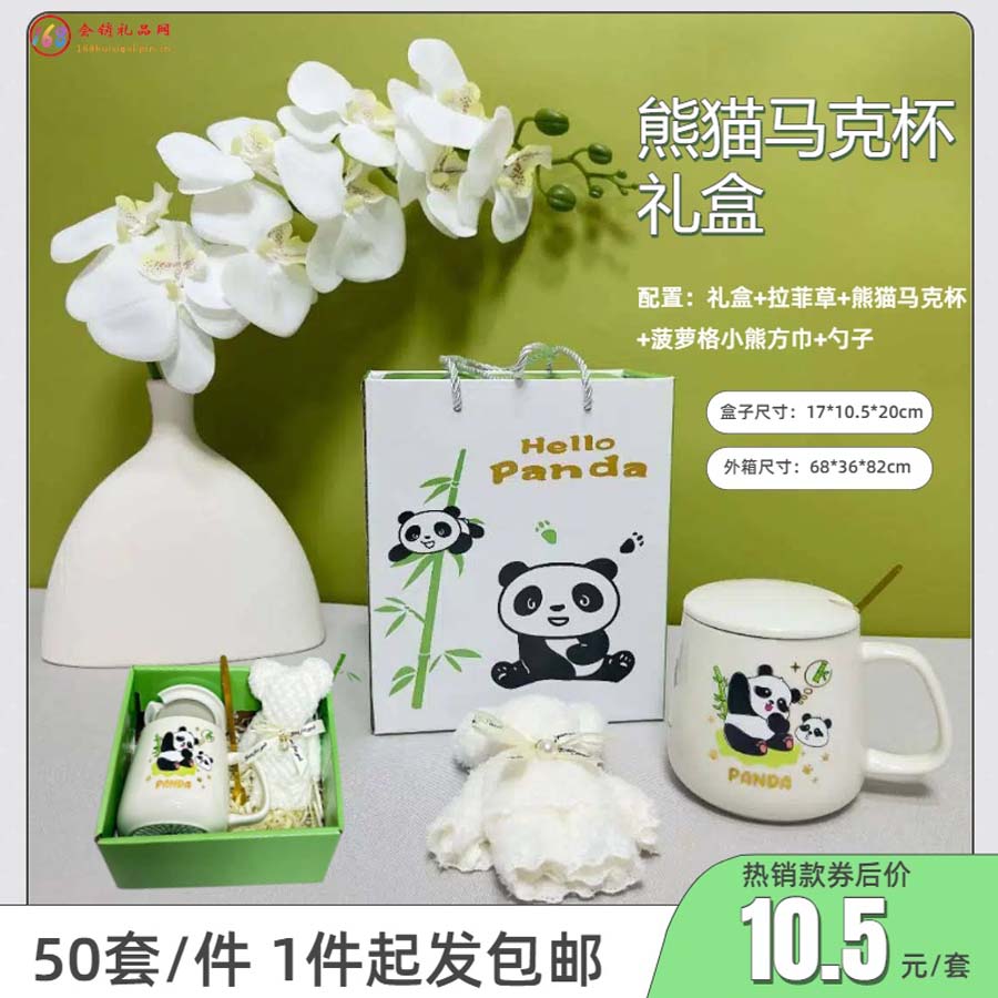 产品套餐:内含礼盒 + 拉菲草 + 熊猫马克杯 + 菠萝格小方巾 + 勺子