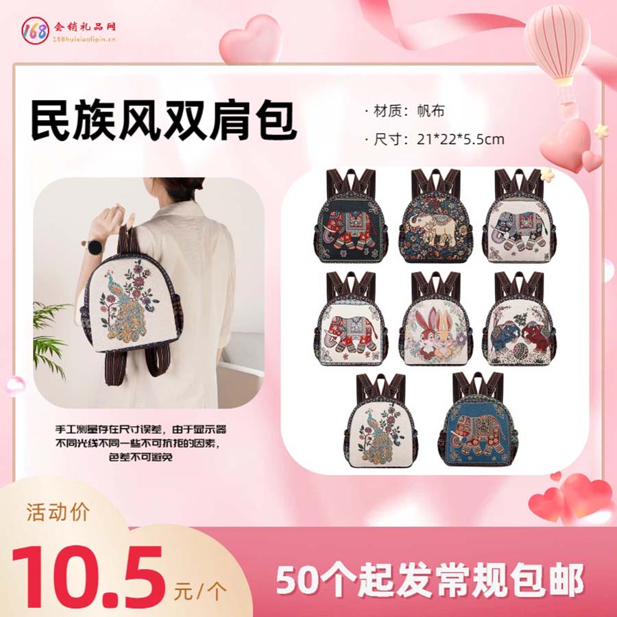 帆布材质双肩包,发货图案随机,民族风印花、小巧轻便,日常出行百搭实用