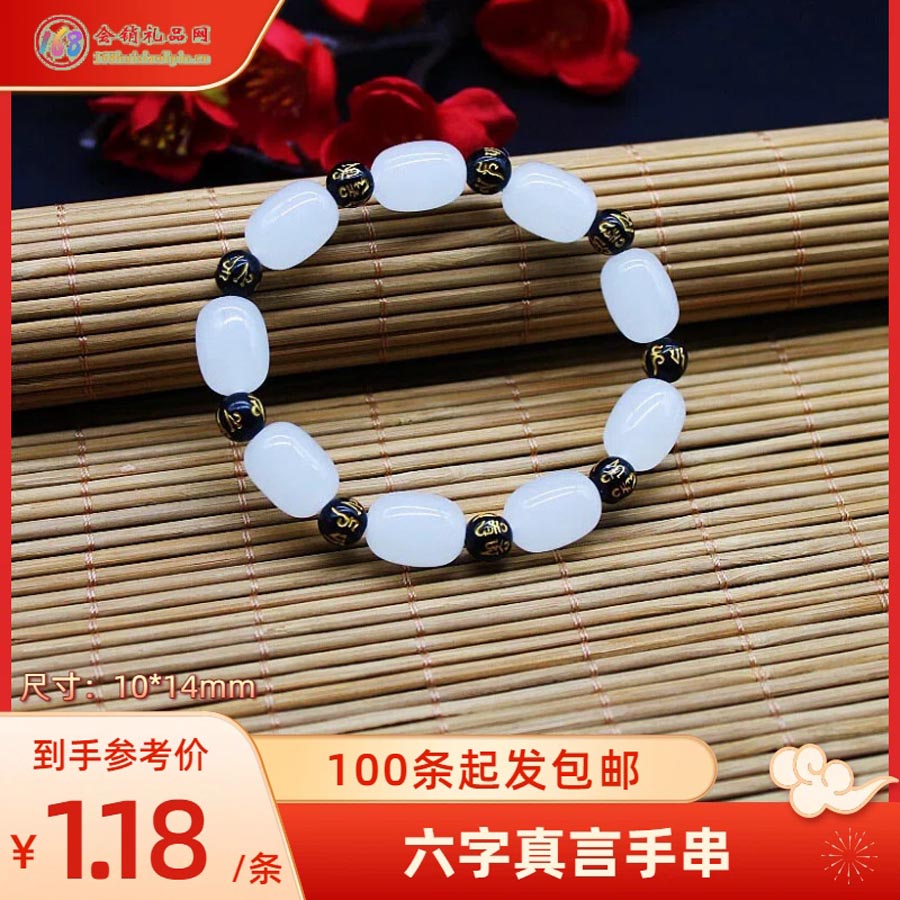 尺寸:10*14mm,白玉桶珠搭配六字真言隔珠