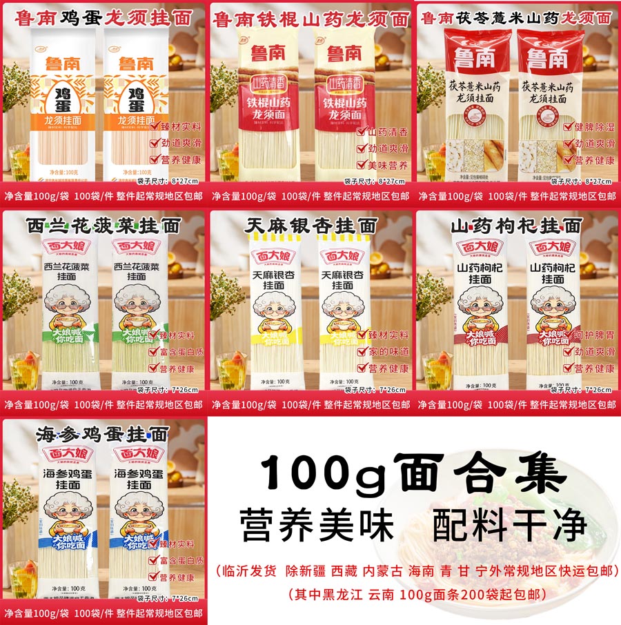 鲁南鸡蛋龙须挂面 、鲁南铁棍山药龙须面、鲁南茯苓薏米山药龙须面、西兰花菠菜挂面、天麻银杏挂面、山药枸杞挂面、海参鸡蛋挂面