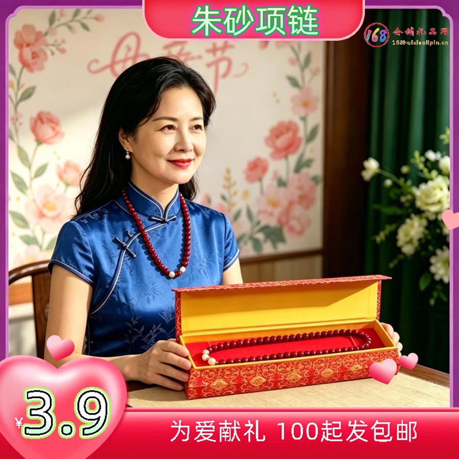 【促销礼品】 朱砂项链带盒